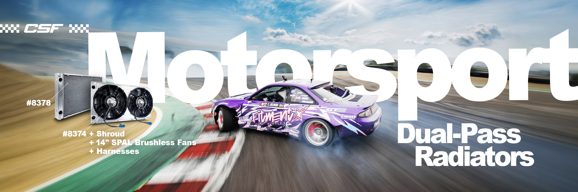 CSF is pleased to announce the new Motorsport Dual-Pass Radiators (CSF #8374 & #8378). The CSF #8374 includes a Shroud + 14″ @SPAL_usa brushless fans & harnesses. The CSF #8378 is the radiator only.