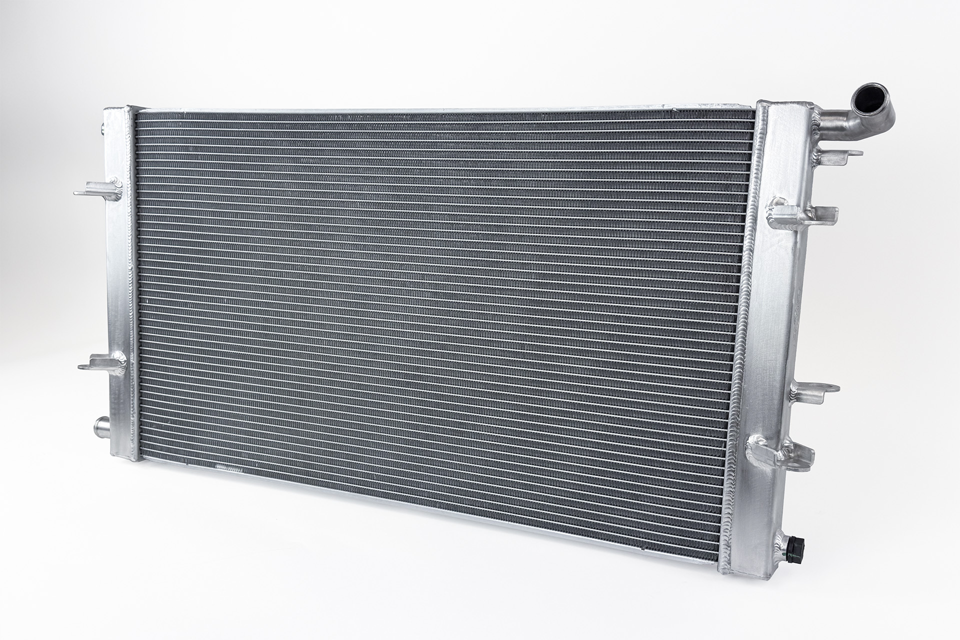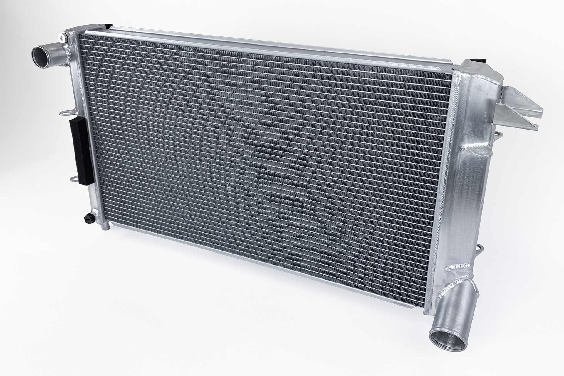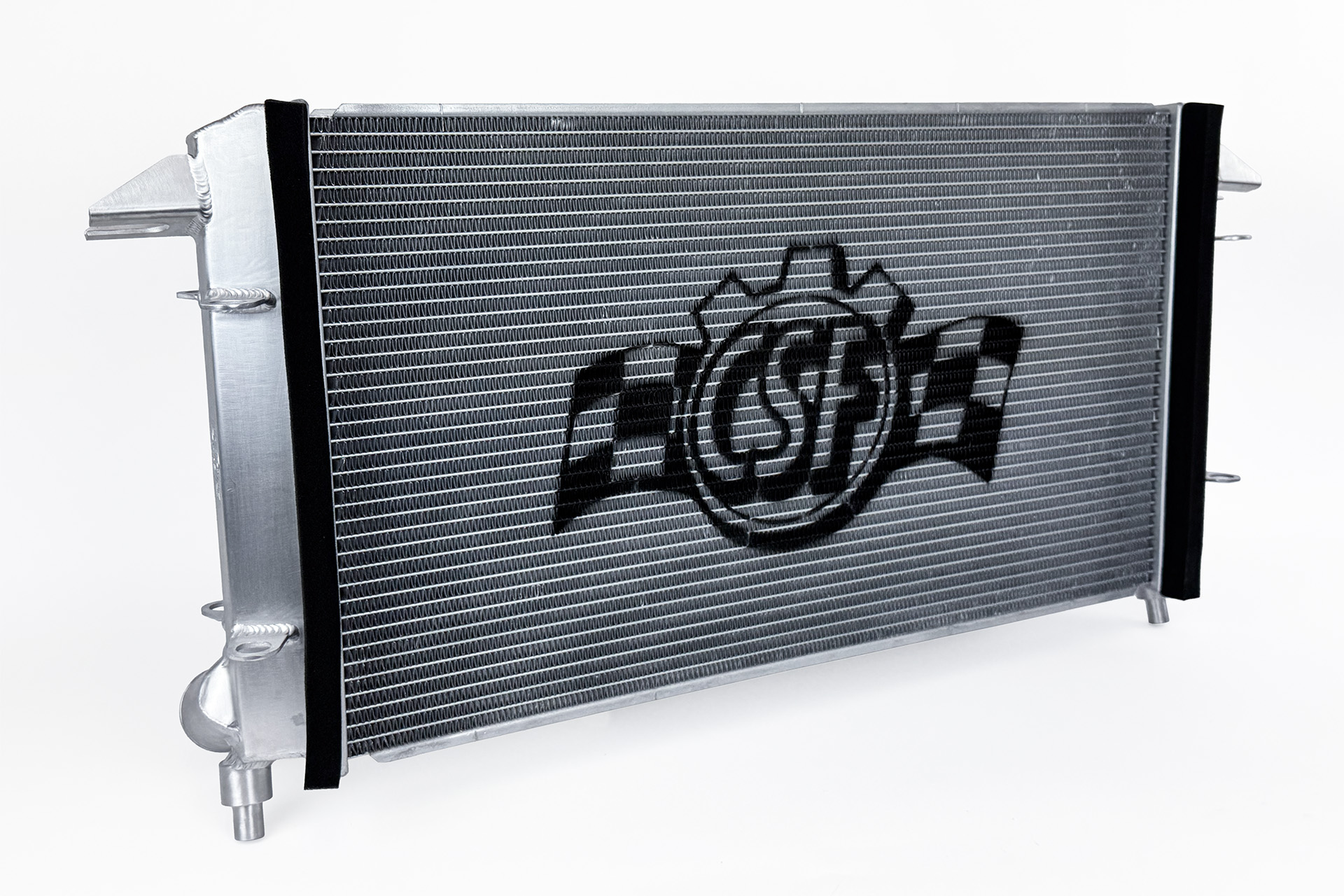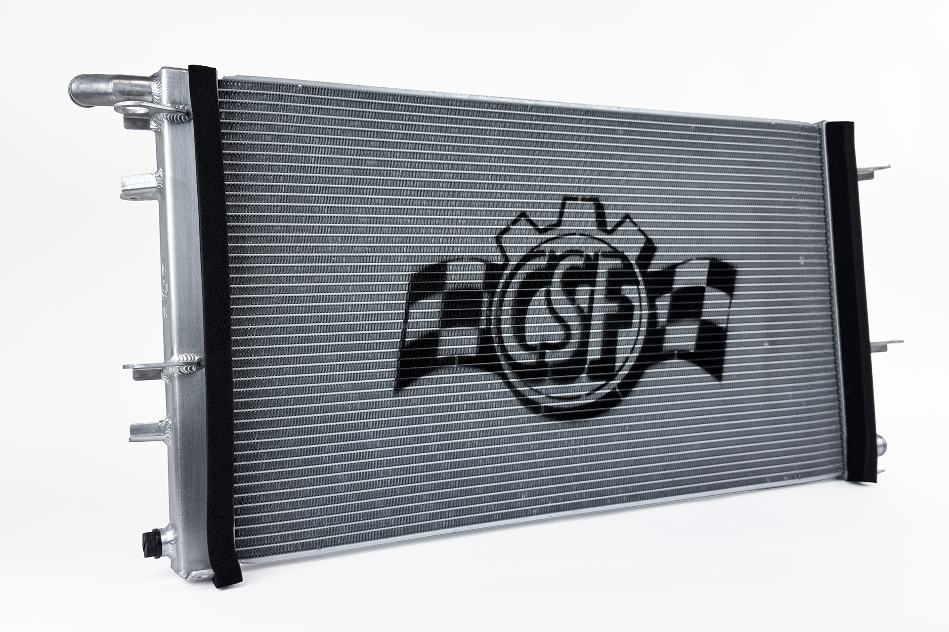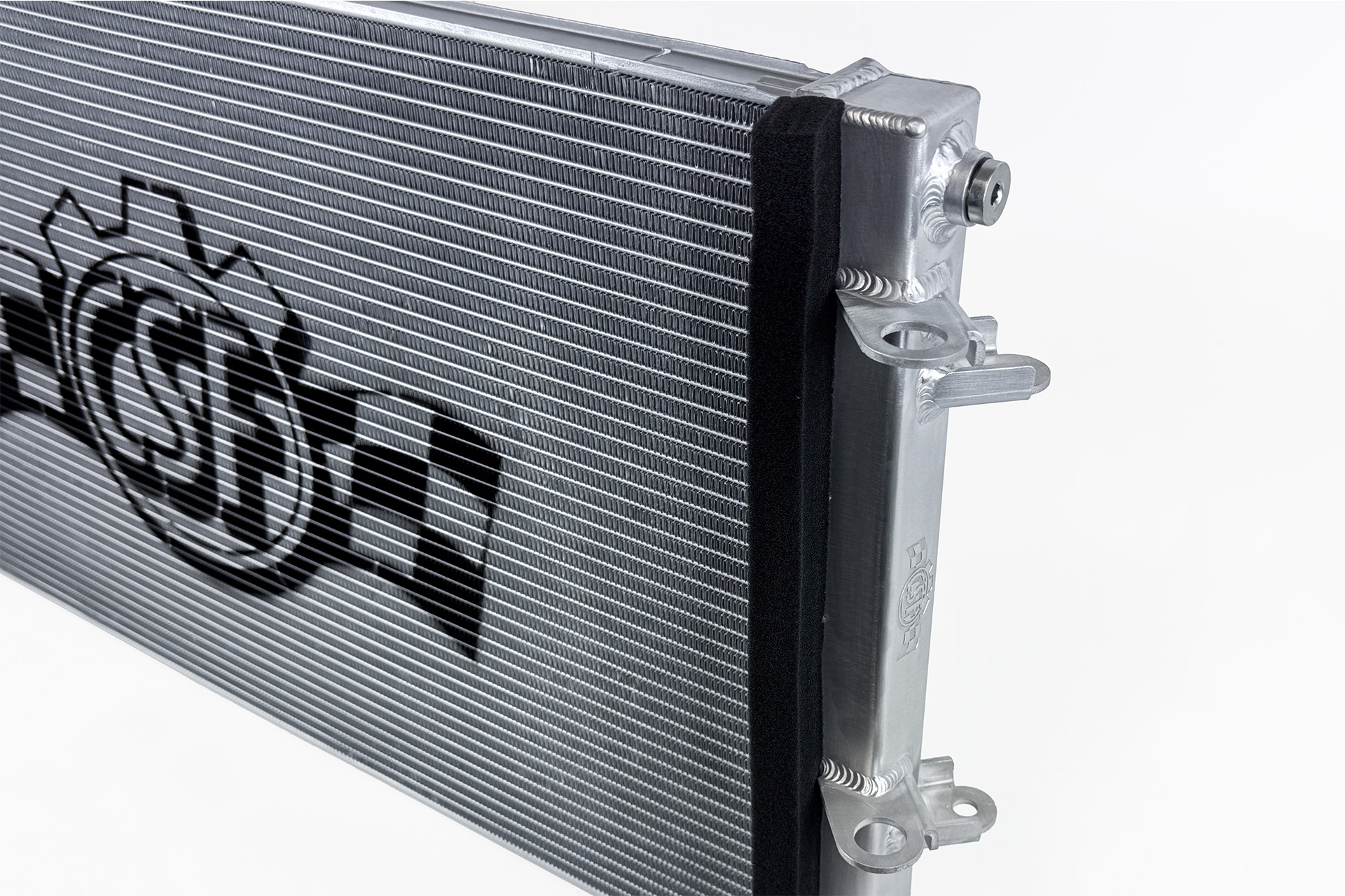 The CSF radiator features a 2-Row 68mm aluminum core that greatly improves the cores ability to dissipate heat. CSF’s Exclusive B-Tube Technology increases the heat transfer by approximately 15% over regular oval welded tubes. Between the 4 additional rows of cooling tubes/fins and 2-row core, the CSF Radiator outperforms the OEM unit by a significant margin. In addition, the super-efficient multi-louvered fins maximize airflow through the core for the best possible performance. The radiator mounts in the factory location and requires no modifications or cutting. It can be paired with the OE heat exchanger or the new CSF #8365 High-Performance Supercharger Heat Exchanger.