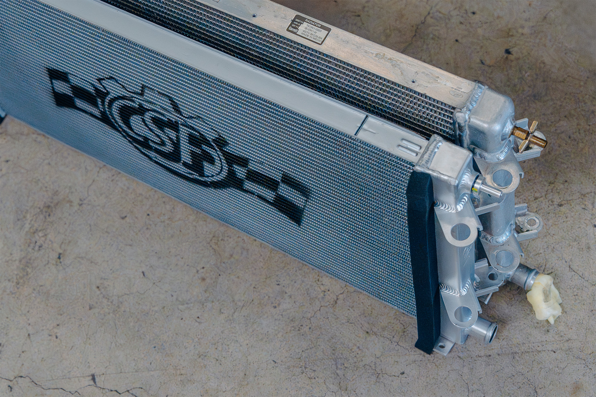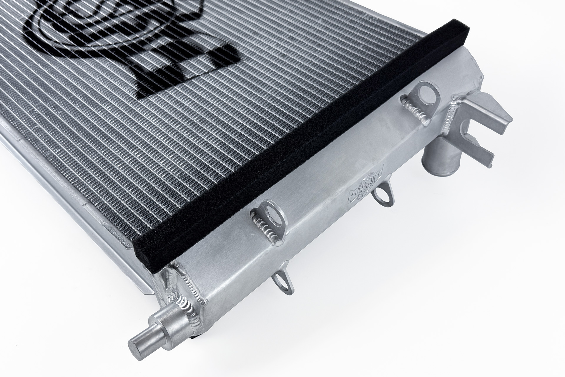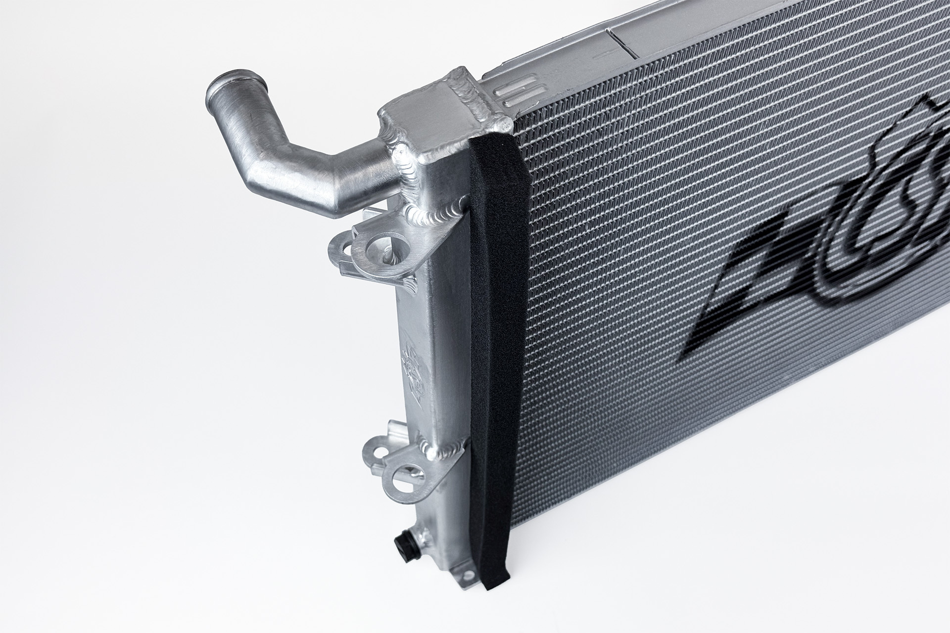Due to the massive amount of heat generated by the supercharged V8, the factory radiator core was a massive 1-row 68mm thick. There wasn’t much room to expand on this, so CSF match the 68mm thickness but with updated cooling technology.